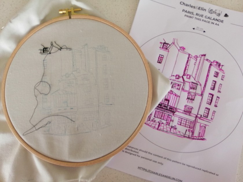 The carbon paper tracing was kind of fun and I thought I’d made a pretty good start – then I went wrong and had to unpick a bit, which meant un-threading my needle – and do you think I could re-thread it? I lost patience after the 5th attempt and put the whole thing away for another day!