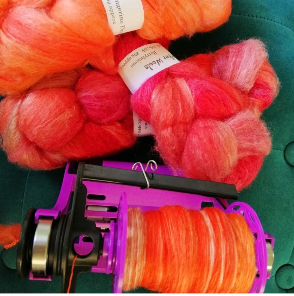 I’m sure there is a knack to making rolags, and practice will make them more consistent, but I am having loads of fun playing! I made a whole heap and have just started spinning them, and it’s so cool to see how the colours are coming out and how the yarn looks.